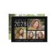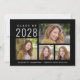 Einfache schwarze Abschluss-Ankündigung für ihn oder sie mit einer 4-Bild-Foto-Collage auf der Vorderseite und einem vollen Foto auf der Rückseite. Fügen Sie den Klassenjahr, den Namen des Absolventen und die Schule oder Universität in minimalen modernen weißen Typografie.