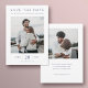 Dieses einfache, elegante moderne Foto Hochzeit speichern Sie das Datum flache Vorlage mit Ihren Namen, Foto, Hochzeitstag und Position auf der Vorderseite. Es sieht großartig aus mit scharfen oder abgerundeten Ecken, versuchen Sie beide Aussehen im Bearbeitungsmodus zu sehen, welche Greifer Sie greifen! Die Standard-Textfarbe auf beiden Seiten ist ein eleganter mittlerer dunkler Schatten von Blau und wir haben den gleichen blauen Ton für die vertikalen Linien auf der Vorderseite und die horizontale Linie auf der Rückseite verwendet. Sie können den Schriftart, die Zeichensetzung oder die Farbe ändern, die für verschiedene Textelemente oder die Zeilen auf der Vorder- und/oder Rückseite verwendet werden. Sie können z. B. eine andere Farbe für einen oder alle Text und die vertikale Linie auf der Vorderseite und die horizontale Linie auf der Rückseite festlegen. Oder Sie ziehen es vor, den SAVE THE DATE Text zu ändern, um OUR DATE RETTEN oder etwas Anderes. Sie können wählen, ob Sie etwas löschen oder ein Textfeld mit einer anderen Nachricht komplett ändern möchten. Der Hintergrund auf beiden Seiten ist so transparent, dass die Farbe des Papiers gelassen werden kann. Sie können das Set jedoch bearbeiten und auf einer oder beiden Seiten eine Farbe auswählen. Wir haben ein paar Beispieltexte auf der Rückseite hinzugefügt, die Sie nach Ihren Wünschen bearbeiten können. Statt Ihre eigene Hochzeitswebsite-Adresse einzugeben, können Sie sich entscheiden, unsere Beispielwebsite-Adresse und die Zeile darüber zu löschen, ohne diese Teile des Designs zu ersetzen. Und anstatt unseren Beispieltext auf der Rückseite mit Ihrer eigenen Nachricht zu bearbeiten, können Sie auch einfach den ganzen Text löschen und die Rückseite der Karte leer verlassen, außer für Ihr Foto, vielleicht um Ihre eigene Nachricht zu schreiben oder ohne Text auf der Rückseite zu senden. Sie können auch unser Beispiel-Foto löschen, ohne es zu ersetzen, wenn Sie nicht gewollt haben, zusätzlich zum auf der Vorderseite ein zweites Foto hinzuzufügen. Der Standard-Papiertyp, Matte, hat eine weiche Wärme und widersteht dem Schmieren, also ist es eine großartige Wahl, um Ihre eigene Nachricht zu schreiben. Sie können diese bearbeiten und als Halbglanz auswählen oder stattdessen auf einen anderen Papiertyp aktualisieren. In jedem Fall vergessen Sie bitte nicht, alle unsere Mustertexte auf beiden Seiten sowie unsere Fotos zu löschen. Passen Sie diese stilvolle, moderne Zwei-Foto-Hochzeit auf und speichern Sie das Datum flache Kartenvorlage mit den intuitiven Bearbeitungstools, Ihren Lieblings-Fotos und Ihrer Inspiration und machen Sie es einzigartig!