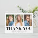 Einfache Abschluss Dankeschön-Karte mit den 3 Fotos des Absolventen auf der Vorderseite mit "Danke" angezeigt in fett schwarz Schrift. Personalisieren Sie das Foto Abschluss Dankeschön Karte, indem Sie den Namen des Absolventen, die Schule und Abschluss Jahr. Die Rückseite der Karte bietet Platz für Ihre eingegebene oder handgeschriebene Danksagung.