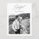 Moderne minimalistische Schwarz-Weiß Hochzeit ein Foto danke Postcard bietet elegante dankbare Kalligraphie-Skript und ein Foto mit einem benutzerdefinierten personalisierten Dankeschön-Nachricht und Rücksendeadresse auf der Rückseite der einfachen, frisch vermählten Dankeschön-Karte.