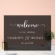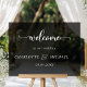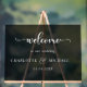 Einfach, elegant, Hochzeiten Akryllische "Willkommen" Zeichen, schwarz transparent, mit Ihren Namen und Datum.