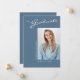 Diese moderne, elegante und dennoch einfache Abschluss-Ankündigungskarte besticht durch Designelemente moderner Texte, die mit eleganten Kalligrafien verschmolzen sind. Das Single-Foto der Absolventen hebt die Kartenvorderseite hervor, während auf der Kartenrückseite personalisierte Textstellen für Informationen über den Abschluss und die künftige Reise angeboten werden. Weiße Schrift auf stylish staubblauem Blau oder leicht anpassen Sie den Hintergrund zu einer Farbe Ihrer Wahl. Um mehr zu sehen, besuchen Sie meinen Shop hier unter "www.Zazzle.com/LakeViewCardCo". Danke