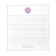 Einfach Eleganter Lavendel-Lined Monogram Name Notepad Diese anpassbaren Notebooks sind einfach für den täglichen Gebrauch oder das Versenden eines formellen Kommentars von Ihrem Zuhause-Büro oder Schreibtisch aus. Sie können auch eine Vielzahl von Farben aus unserem Shop für Ihre Zuhause-Office-Anforderungen auswählen. Personalisieren Sie diese Notizblöcke mit Ihrem Namen oder geben Sie sie als Geschenk und passen Sie sie mit Ihren Freunden oder Familiennamen an, damit sie sie auf ihrer Zuhause oder im Büro verwenden können.