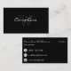 Eine Visitenkarte in einem einfachen und eleganten Design in weiß auf schwarz mit einem Namen und Monogramm auf der Vorderseite und Kontaktinformationen auf der Rückseite.