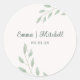 Einfach Elegantes Salbei Grün Botanische Hochzeit Runder Aufkleber