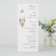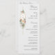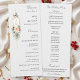 Dieses herrliche botanische Winterprogramm mit Bouquets von Elfenbein-Rose und Blume, roten Heiligbeeren, Tannen und goldenen Schneeflocken umrahmt von einem edlen Goldlabel für Ihr Monogramm auf einem hellperlengrauen Hintergrund. Enthält bearbeitbare Textfelder für Ihre Zeremonie und Hochzeitsfeier.