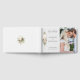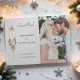Dieses herrliche botanische Gästebuch aus dem Winter mit Bouquets von Elfenbein-Rose und Blume, roten Heiligbeeren, Tannen und goldenen Schneeflocken umgeben von einem eleganten Goldlabel für Ihr Monogramm auf einem hellperlengrauen Hintergrund. Enthält bearbeitbare Textfelder und Bildvorlagen.