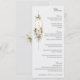 Dieses herrliche, im Winter wechselnde botanische Menü umfasst Sträucher mit Elfenbein-Rose und Blume, rote Heiligbeeren, Tannen und goldene Schneeflocken, die ein elegantes Goldlabel für Ihr Monogramm auf einem hellperlgrauen Hintergrund umgeben. Enthält bearbeitbare Textfelder für Ihre Menüoptionen sowie eine ergänzende Blumengrafik auf der Rückseite.