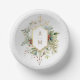 Diese hübsche Botanische Papierschale aus dem Winter mit Bouquets von Elfenbein-Rose und Blume, roten Heiligbeeren, Tannen und goldenen Schneeflocken umgeben von einem eleganten Goldlabel für Ihr Monogramm auf einem blassperlengrauen Hintergrund. Enthält bearbeitbare Textfelder.