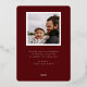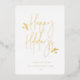Happy Holidays, einfach festliche Schrift mit Laub Akzenten, reale Goldfolien Typografie. Single Quadrat Rahmen Foto mit Vorlagenraum für Ihre persönliche Urlaubsnachricht hinten mit dunkelrotem Hintergrund.