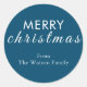 Einfache und elegante Schrift "Frohe Weihnachten" Familienname Classic Round Sticker - Blau.