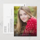 Diese minimalistische Abschluss-Postkarte zeichnet sich durch trendige Typografie und ein großes Foto aus. An der Vorderseite wird "Graduate" in Goldschrift mit einem großen blühte geschrieben. Das Abschluss Jahr wird in den blüh gesetzt, und der Name und die Schule des Absolventen sind unten. Das Typografiedesign überlagert ein großes vertikales Foto. Auf der Rückseite der Abiturpostkarte können Sie eine Nachricht an Empfänger und/oder Graduiertengruppe Informationen hinzufügen.