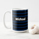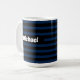 Diese niedliche Tasse weist dunkelblaue und schwarze Streifen auf. Kann mit einem Namen auf der Vorderseite angepasst werden.