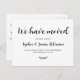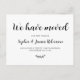 Einfache Minimale "Wir haben bewegt" Script neue Zuhause Moving Ankündigung Postcard. Lass deinen Freunden und der Familie deine neue Adresse mit diesem minimalistisch hübschen handgeschriebenen Schriftart-Schriftzeichen Typografie (oder Kalligrafie) "We Have Moved"-Text auf der Vorder- und Rückseite "Bitte in Touch behalt!"-Text in Schwarzweiß. Einfach mit Ihren eigenen Details anpassen.