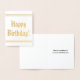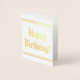 Diese einfache Goldfolie Geburtstag Grußkarte Design beinhaltet die Meldung "Happy Birthday!" auf der Vorderseite, zusammen mit einer anpassbaren Nachricht auf der Innenseite. Es könnte jemandem geschenkt werden, der einen Geburtstag feiert.