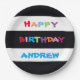 Alles Gute zum Geburtstag, Niedliche , moderne Personalisierte Teller. Passen Sie Ihren eigenen Namen an. Die hellen und optimistischen "Simple Bright Colorful Individuelle Name Happy Birthday Paper Teller" Worte sind auf klassischem Schwarz-Weiß-Streifen Hintergrund gedruckt. Schneller Weltversand. 30 Tage Geld zurück Garantie. Stolz hergestellt in den USA! Einfache, helle Individuelle Name Happy Birthday Paper Teller, erstellt von Künstler RjFxx . *Alle Rechte vorbehalten. #ZazzleMade