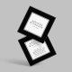 Ein einfaches, aber klassisches Design auf dieser quadratischen Visitenkartenvorlage. Ihr Name oder Firmenname ist elegant in einem gerahmten weißen Kasten auf schwarzem Hintergrund gestaltet. Diese doppelseitige quadratische Karte bietet viel Platz für Ihre Kontaktinformationen auf der Rückseite. Design von 1201AM Design Studio | www.1201am.com