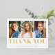 Einfache Abschluss Dankeschön-Karte mit den 3 Fotos des Absolventen auf der Vorderseite mit "Danke" angezeigt in fett Goldfolie Schrift. Personalisieren Sie die Goldfolie Abschluss Dankeschön Karte, indem Sie den Namen des Absolventen, die Schule und Abschluss Jahr. Die Rückseite der Karte bietet Platz für Ihre eingegebene oder handgeschriebene Danksagung.