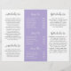 Moderner und beruflicher lila / lavender Trifold Broschüre Flyer mit einem einfachen und minimalen Design mit Ihrem Namen in einem eleganten Drehbuch und zeitgenössischen Sans Serif Schriftart. Die Vorlage enthält mehrere geteilte Bereiche für Ihre Dienste in einem minimalistischen Layout. Der Rücken hat Ihre Kontaktdaten und optionalen QR-Code. Wenn Sie es vorziehen, kann der QR-Code im Entwurfstool entfernt werden. Im Inneren finden Sie Abschnitte für Firmeninformationen und eine Preisliste.