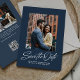 Diese stilvolle "Save the Date"-Karte zeigt eine retro-inspirierte Schrift "Save the Date" unter einem einzelnen Foto auf einem klassischen dunkelblauen Hintergrund, zusammen mit einfachem, individuellem Text. Die Rückseite dieser modernen "Save the Date"-Karte hat einen passenden blauen Streifen zusammen mit einem horizontalen Foto, Platz für eine individuelle Nachricht und einen QR-Code für Ihre Hochzeitswebsite. Dieses vertikale Design ist großartig für ein trendbewusstes und stilvolles Paar und ist eine großartige Möglichkeit für das verlobte Paar, Hochzeitsinformationen mit Freunden und Familie zu teilen. Weitere Farben und Stile finden Sie in der Kollektion von Lea Delaveris Design. Auch als digitaler "Save the Date"-Download erhältlich.