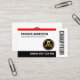 Ein einfaches, minimalistisches weißes Cover mit einer oberen roten Schicht gegenüber seinem schwarzen Gegenstück am Boden. An der Spitze liegt Ihr angesehener Name und ein Slogan, den Sie ändern können. Rechts davon befindet sich der vertikal gehaltene Firmenname "CHAUFFUER" und das Logo des Goldchauffeers, das Sie benutzen können. Die schwarze Streifenschicht an der Basis hat Ihren Telefonkontakt. Oben steht das goldene Logo, gefolgt von Ihrem angesehenen Namen, den Kontaktdaten und einer Slogan-Option, um Ihre Dienste bekannt zu machen. Eine großartige Karte für Chauffeure. #chauffeur #driver #privatedriver #carhire #taxiservice #taxiride #designateddriver #rideshare #privatedriver #privatecarhire #zazzlemade
