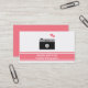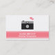 Eine Visitenkarte mit weißem Hintergrund und eine Kameraikone mit einem Paar Herzen als Entwurf. Rosa Raum der Süßigkeit für Personifizierung der Details. Eine einfache, berufliche und moderne Geschäftskarte für Fotografen, die sich spezialisieren, auf, die schöne Hochzeit gefangenzunehmen, fotografiert.