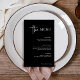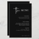 Dieses elegante, schwarze Dinner Menü ist einfach und minimalistisch, aber sehr stilvoll, dank der weißen, modernen handschriftlichen Skripte und sauber Layout.