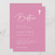 Diese eleganten, rosa Girl Baptism Einladungen sind einfach und minimalistisch, aber sehr stilvoll dank der modernen weißen handgeschriebenen Schrift und sauber Layout. Es gibt auch ein passendes Kreuz.