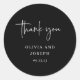 Diese eleganten, schwarzen Hochzeitsklebe oder Brautparty-Aufkleber sind einfach und minimalistisch, aber sehr stilvoll dank der modernen handgeschriebenen Schrift, die "danke" sagt, und der sauberen Anordnung.