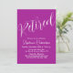 Einfach Moderne Party Einladung Pension Dunkelrosa Personalisieren Sie diese elegante Dunkelrosa Pensionierung Party Einladung mit dem Namen der Person feiert einen ganz besonderen Tag in ihrem Leben und anpassen Sie alle Party Feierlichkeiten in der Pension. Das Ruhestand ist ein besonderer Meilenstein zum Feiern. Mark den Anlass, indem Sie ein Party erstellen und Einladungen an alle besonderen Menschen in ihrem Leben senden. Laden Sie unser Geschäft für Geschenke, die Sie mit diesem gleichen eleganten Design auf Ruhestand Geschenke und Ruhestand Party Dekorationen personalisieren können.