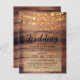 Einfach rustikale Naturholz-Lichter String Hochzei Einladung