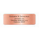 Fügen Sie Ihrer E-Mail eine schlanke und moderne Touch mit unserem schlichten, stilvollen Peach Fuzz Brushed Metal Label hinzu! Mit einem einzigartigen pfirsichfarbenen fuzz-orangfarbenen Metallhintergrund ist dieses Label elegant und funktionell zugleich. Passen Sie Ihren Namen oder Familiennamen in der schwarzen Schriftzeichenkalligrafie an und fügen Sie Ihren vollständigen Namen und Ihre Adresse in der klassischen schwarzen Typografie ein. Ideal, um den Gästen zu danken, Geschenke zu personalisieren oder Ihre Briefmarkensammlung zu verbessern!