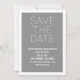 Einfache Ankündigung Datum freihalten in Grau und Weiß mit modernem Typografie-Design. Diese trendige und schicke Save the Date einladen ist einfach zu Ihren Hochzeitsdetails anpassen. Klicken Sie für weitere Anpassungsoptionen auf die Schaltfläche Anpassen.