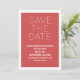 Einfache Ankündigung Datum freihalten in Rot und Weiß mit modernem Typografie-Design. Diese trendige und schicke Save the Date einladen ist einfach zu Ihren Hochzeitsdetails anpassen. Klicken Sie für weitere Anpassungsoptionen auf die Schaltfläche Anpassen.