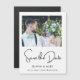 Einfaches elegantes Text und Foto | Save the Date Elegantes und stilvolles weißes Drehbuch Save the Date Magnetische Einladung. Ideal für Hochzeiten, Geburtstage, Abschlüsse und andere Veranstaltungen.