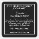 Ein Etikett für Bademittel und Körperpflegeprodukte mit schwarzem Hintergrund und weißem Text.