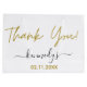 Einfache und stilvolle Party Geschenktaschen personalisiert mit vielen Dank Typografie, Familienname und Datum.