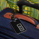 Elegante, anpassbare schwarze Gepäckmarke mit weißem Rahmen und feinem Monogramm.