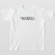 Dieser minimalistisch schwarze Buchstaben Familienname auf dem T - Shirt eines Kindes hat eine stilisierte Typografie, die es interessant macht. Es ist kühn und weil es in allen Kappen ist, ist es leicht zu lesen, was praktisch ist, wenn man ein Kind ist. Es hilft auch, deinen Nachnamen auf einem T - Shirt zu haben, also verliert man ihn nicht. Frag nicht.
