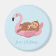 Ein Magnet mit einem niedlichen Faultier, der mit einem saftigen Getränk abkühlt, das faul auf einem rosa Flamingo Float liegt. Die Hintergrundfarbe kann im Anpassungsmodus geändert werden. Im Text steht "Just Chilling". Whimsical, trendig und amüsant Design für Mädchen in diesem Sommer!