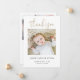 Diese einfach bezaubernde individuelle Geburtsankündigung für Fotos dank einer Flachkarte verfügt über ein zeitgemäßes Design, das Ihnen lasse, es einfach an den Anzug Ihres Stils anzupassen. Als Standardeinstellung haben wir die scharfen Ecken gewählt, aber man kann das Aussehen leicht in abgerundete Ecken ändern, da dieses Aussehen auch wunderbar mit diesem Design funktioniert. Also versuchen Sie beide Aussehen im Bearbeitungsmodus und sehen Sie, welche Griffe Sie! Dieses minimalistische Design haben wir mit "Danke" über dem Foto in einem fließenden modernen Schriftart, der einen warmen und familiären Flair hat, einen Hauch von Panik gegeben. Um diesen Aspekt des Designs hervorzuheben, haben wir einen eleganten goldenen Ton gewählt, der Kalifornien Gold für das "Danke"-Skript heißt. Aber bitte fühlen Sie sich frei, die Farbe zu ändern oder die Nachricht zu ändern, was Ihrem extravagant erscheint, sei es 'Vorstellen' oder 'Hallo, Welt!', etc. Sie können die Farbe und den Schriftart dieses oder eines anderen Textes auf beiden Seiten nach Ihrem Geschmack ändern. Die Standardfarbe für den Namen und die Details auf der Vorderseite sowie der Text auf der Rückseite ist schwarz. Wenn Sie ein minimalistischeres Aussehen bevorzugen, können Sie löschen, ohne eine unserer Beispielstatistiken auf der Vorderseite zu ersetzen - Sie wollte möglicherweise nicht, die Zeit des Tages oder die Länge, zum Beispiel, einzubeziehen. Wir haben den Hintergrund auf beiden Seiten als transparent Set, um die Farbe Ihres Papiers lassen, dienen einfach als Grundton. Sie können dies auf einer oder auf beiden Seiten ändern, indem Sie stattdessen eine Farbe auswählen. Auch auf der Rückseite haben wir ein Beispiel-Foto platziert, um Ihnen die Möglichkeit zu geben, zwei Ihrer Fotos auf diese Karte zu setzen, eines auf jeder Seite. Bitte denken Sie daran, beide Fotos durch eigene Bilder zu ersetzen. Oder Sie ziehen es vor, das Beispiel-Foto auf der Rückseite zu löschen, ohne es durch Ihr eigenes Foto zu ersetzen, indem Sie diesen Platz für eine Nachricht verwenden, etc. Wir haben einige Beispieltexte unter das Beispiel-Foto gesetzt, damit Sie Ihre eigene Nachricht nach Belieben ersetzen können, aber bitte fühlen Sie sich dadurch nicht eingeschränkt. Wenn Sie es vorziehen, unseren Beispieltext vollständig zu löschen und diesen Teil der Karte vollständig leer behalten, sodass Sie stattdessen eine handschriftliche Notiz auf der Rückseite jeder Karte schreiben können, können Sie das tun. Oder Sie wollte, unseren Text durch Ihre eigene Nachricht und Ihr eigenes Schließen zu ersetzen und dann Ihre Namen zu signieren, wenn Sie die Karten erhalten. In jedem Fall sollten Sie daran denken, alle Sample/Platzhalter-Texte und Fotos auf beiden Seiten zu entfernen. Der Standardpapiertyp Matte hat eine weiche Wärme und widersteht dem Verstümmeln, daher ist es eine großartige Wahl, Ihre eigene Nachricht zu schreiben. Sie können dies natürlich in einen anderen Papiertyp ändern, um Ihren Stil Anzug. Nutzen Sie die intuitiven Designwerkzeuge, Ihre Lieblings-Fotos und Ihre Inspiration, um diese individuelle Geburtsankündigung zu personalisieren.