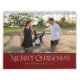 Dieser schlichte, stilvolle Foto-Kalender zeigt die elegante Typografie, "Frohe Weihnachten" in Elfenbein über einen eigenen Farbhintergrund (dunkelrot). Eine Textvorlage ist für eine einfache Personalisierung vorgesehen. Der Rücken enthält ein handgezeichnetes Blumenmuster in den traditionellen Weihnachtsfarben von tiefgrün, rot und Elfenbein über einem beigen sandfarbenen Hintergrund. *Kunstwerk, das ausschließlich von Orabella Prints erstellt wurde.