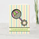 Süß und reizend, wird dieses bunte Geklapper mit Zirkus-inspiriertem Rosa und Grün punktierten Segmenten und blauem und orange Gitter auf dem Hauptgeklapper, gelben Polkapunkten auf dem lila Griff und hell farbigen Segmenten wie beflecktem Glas auf dem Blume geformten Griff verziert. Streifen weich Gelbes, blau und im Rosa schaffen einen leichten Hintergrund, um das vibrierende Geklapper zu kontrastieren. Fertigen Sie das Gefühl auf dem Band auf der Front und auf dem Innenraum mit Ihrer Mitteilung der Wahl besonders an, um eine wirklich einzigartige Karte für jede Babyparty oder werdende Mutter herzustellen. Sie können zur Anmerkung auch austauschen, die, um dieses zu ein niedliches leicht zu machen in Scheckkartengröße ist, danken Ihnen, für nach die Dusche zu kardieren. Seien Sie zum Karo heraus die volle einfach süße Geklappersammlung für größere Geschenke und Produkte für eine Babydusche oder das kleine in Ihrem Leben sicher.