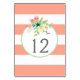 Einfach Tischnummer Tafelkarten mit Blumen und Streifen / Pfirsichminze
