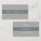 Elegante berufliche Karte mit einem grauen Streifen und nur mit grundlegenden Informationen... Ihr Name in einem Skript-Schriftart-Stil, Beruf, Initialen und zusätzliche Informationen...