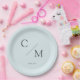 Kundenspezifische, moderne, einfache, elegante Hochzeitspapierplatte in hellblau, grau. Editieren Sie Ihr Produkt in wenigen Minuten. Sie können Schriftart/Größe/Farbe und Position mit "weiter personalisieren" ändern.