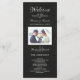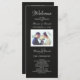 Ein personalisiertes und individuelles Einfaches und dennoch elegant: Schwarz & Weiß mit Monogramm | Modernes Hochzeitsprogramm / Modernes Brautpaarprogramm für Ihre Hochzeitsfeier. Ersetzen Sie das Beispiel-Foto durch Ihr eigenes, und verwenden Sie die Vorlagenfelder, um den Text einfach hinzuzufügen. Das Menü Anpassen kann auch verwendet werden, um die Farbe des Schriftartes und des Hintergrunds zu ändern, um Ihre Hochzeitsfarbe Anzug. Trendy, elegant und zeitlos - koordiniert wunderschön mit so vielen heutigen Hochzeitstilen. In einem Schwarz-Weiß-Thema mit schwarzem Leinentuchhintergrund dargestellt, kann aber für den Text und den Hintergrund auf Ihre Hochzeitsfarben angepasst werden. Fügen Sie alle anderen Grafiken, Texte (Größe, Farben, Position, Schriftart in den Bearbeitungswerkzeugen unten unter allen Vorlagen) oder Monogramme zu Ihrer Personalisierung dieser Vorlage hinzu.