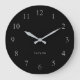 Diese elegante, moderne Uhr verfügt über silberne Ziffern auf dunklem, schwarzem Hintergrund mit einem Platz, um Ihren Namen hinzuzufügen.