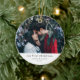 Simple Our First Christmas Verlobt Couple Foto Keramik Ornament ist ein stilvolles, modernes Urlaubssornament mit Ihren Namen in klassischer Typografie in Weiß über Ihrem vollformatigen Foto.