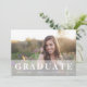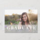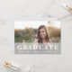 Das moderne Abschluss Foto lädt Sie ein zu einem landschaftsorientierten Foto mit einem weißen Overlay mit "Graduate" in fett weißer Schrift und Ihrem Namen, Schuljahr und Abschluss. Karten kehren zurück, um die Details Ihrer Graduiertengruppe zu enthüllen, die von einem subtilen, grau-weiß gezeichneten Zifferblatt gerahmt sind. Eine elegante und moderne Wahl für 2017 Absolventen.